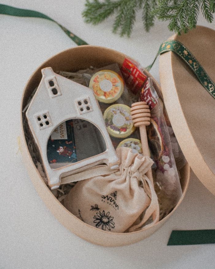 Эко бор цаасан хайрцагтай бэлгийн багц нь улаан болон ногоон туузны сонголттой. Та туузны өнгийг захиалганы коммент хэсэгт бичээд явуулаарай.