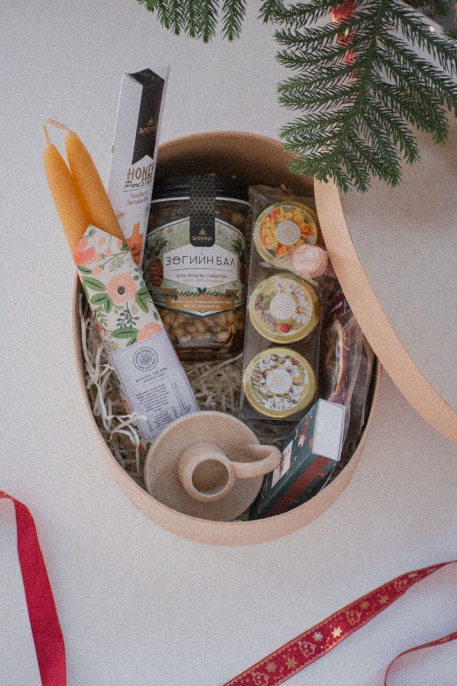 Эко бор цаасан хайрцагтай бэлгийн багц нь улаан болон ногоон туузны сонголттой. Та туузны өнгийг захиалганы коммент хэсэгт бичээд явуулаарай.