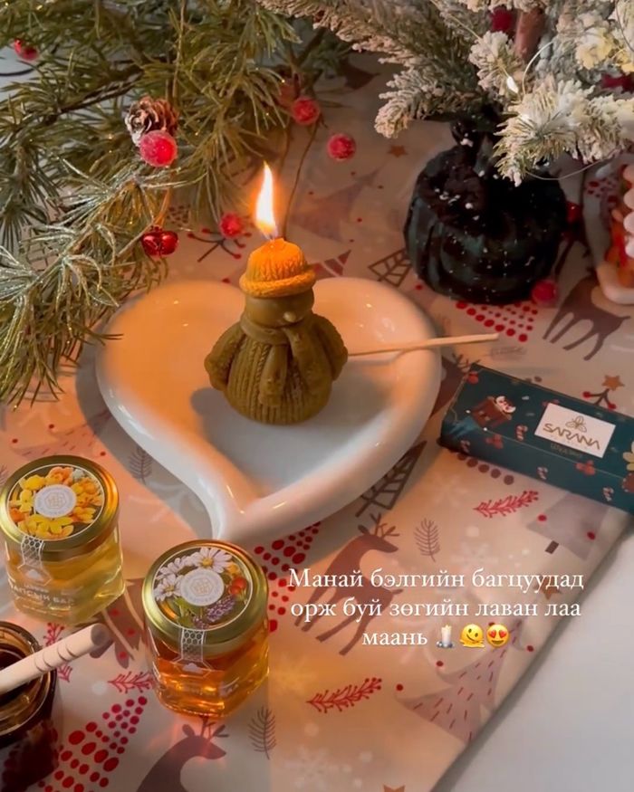 100% Монгол зөгийн лаваараа хийсэн цасан хүн лаа. Зөгийн лаван лаа нь сөрөг ион ялгаруулж агаарт буй тоос тоосонцрыг цэвэрлэнэ. - Агаар цэвэрлэнэ - Харшил намдаах шидтэй
