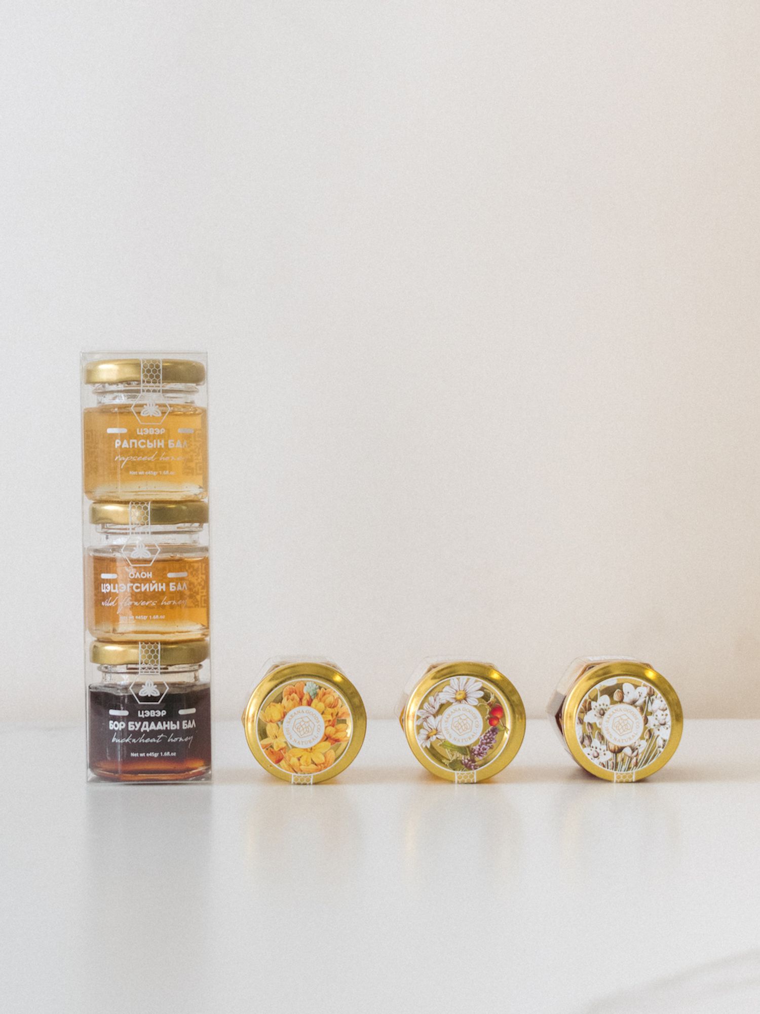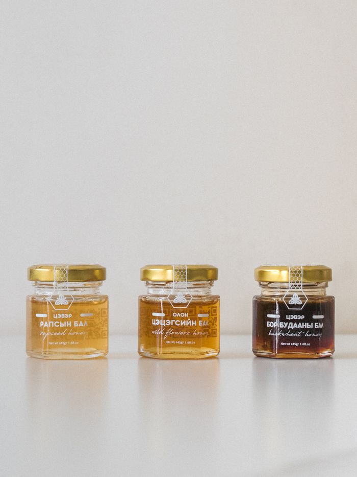 Гогод мангир, гоньд, туйплан, морины уруул цэцэгсээс гарган авсан 100% цэвэр зөгийн бал.